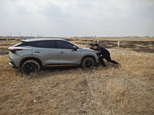 到達現(xiàn)場后,民警發(fā)現(xiàn)轎車深陷泥地,輪胎周圍泥土松軟,車身傾斜。考慮到盲目拖拽可能導(dǎo)致車輛受損,民警們沒有貿(mào)然行動,而是圍繞車輛仔細勘察,制定救援方案。隨后,民警們兵分兩路,一組負責清理輪胎周圍的泥土和雜物,為救援創(chuàng)造條件;另一組則尋找合適的著力點,準備利用繩索和警車進行拖拽。