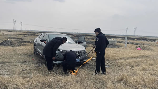 事發(fā)當日,宋站派出所接到一位外地司機的緊急求助電話。電話中,司機聲音焦急,稱自己對當?shù)芈窙r不熟悉,車輛不慎陷入野地,無法動彈,周圍荒無人煙,自己孤立無援。接警后,民警張臨深知情況緊急,立即帶領(lǐng)新警張藝超、韓旭、趙明睿,攜帶救援工具迅速趕赴現(xiàn)場。