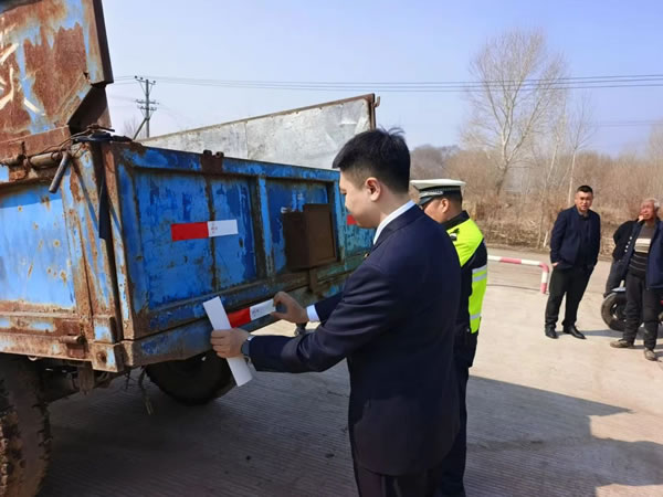 為了進(jìn)一步保障村民夜間出行安全,工作人員還為村民的農(nóng)機(jī)具和農(nóng)用車輛粘貼了反光標(biāo)識(shí)。農(nóng)村地區(qū)夜間光線較差,農(nóng)機(jī)具體積較大且顏色多為深色,容易發(fā)生交通事故。反光標(biāo)識(shí)在燈光的照射下會(huì)格外醒目,能有效提高農(nóng)機(jī)具的辨識(shí)度,降低事故風(fēng)險(xiǎn)。工作人員仔細(xì)地將反光標(biāo)識(shí)粘貼在農(nóng)機(jī)具的顯眼位置,并向村民們講解反光標(biāo)識(shí)的重要作用和日常維護(hù)方法。
