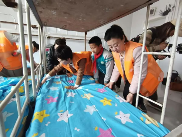 劉鐵波一行先后深入學(xué)生宿舍、食堂和教室進(jìn)行實(shí)地查看。他詳細(xì)聽(tīng)取學(xué)校負(fù)責(zé)人生源及教師隊(duì)伍建設(shè)等情況的匯報(bào),仔細(xì)詢問(wèn)孩子們的生活起居安排、食堂飲食衛(wèi)生情況、教學(xué)設(shè)施及學(xué)習(xí)情況,同時(shí)對(duì)婦聯(lián)愛(ài)心媽媽伴讀表示肯定。