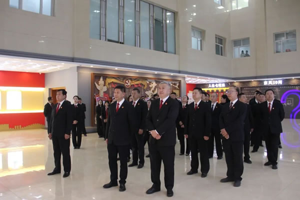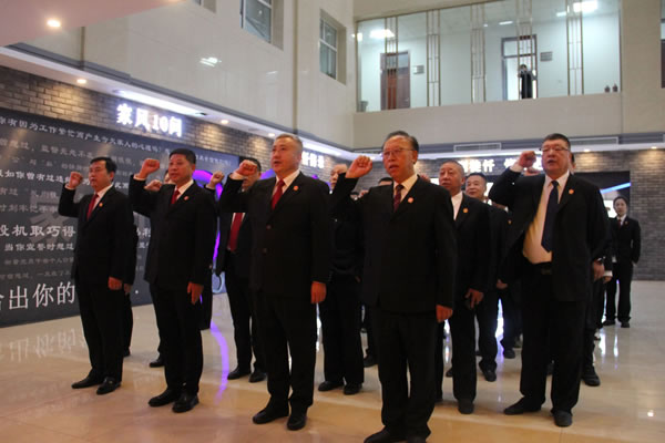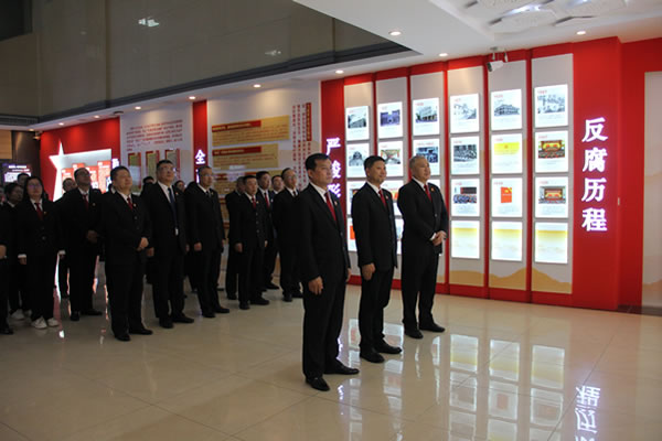 參觀最后,全體干警在黨旗前莊嚴宣誓,重溫入黨誓詞。
