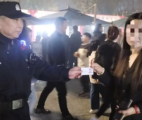 接到求助后,民警李雪松立即通過證件上的身份信息進行查詢,獲取到失主劉女士的聯(lián)系方式后,第一時間與劉女士取得聯(lián)系。原來,劉女士正為丟失身份證一事心急如焚!拔沂莵碚貣|參加小餅美食節(jié)的外地游客,身份證不見我住店肯定會耽誤事,多虧了你警察同志了!”劉女士激動地說道。當李雪松將完好無損的身份證交到劉女士手中時,其難掩感激之情,緊緊握住民警的手連聲道謝。