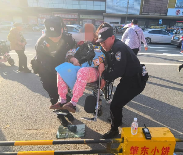 據(jù)了解,在當天下午17時,一名坐著輪椅的老人準備到小餅節(jié)活動現(xiàn)場去感受下美食的魅力,但是走到影劇中心路口時,因為隔離桿的原因,老人無法通過,在通道上停留了許久。此時,負責該片區(qū)域的西城派出所教導員李明光看見后,積極主動走到老人身邊了解情況。民警對老人說,我們幫你把輪椅抬過去吧。老人表示她身體有多種疾病,不能抱和背,只能請民警幫忙把輪椅一起抬過去。兩位民警小心翼翼地抬著輪椅通過隔離桿,并一直安全護送到小餅節(jié)現(xiàn)場內(nèi)。民警用了不到兩分鐘將殘老人安全護送這一微小的舉動溫暖人心,獲得幫助的老人更是連忙道謝。