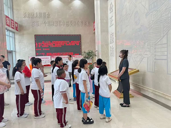 活動(dòng)當(dāng)日,陽(yáng)光明媚,在“愛(ài)心媽媽”的陪伴下,肇東市新立小學(xué)的學(xué)生們滿懷好奇與期待踏入法院的大門。在解說(shuō)員的引導(dǎo)下,大家有序參觀了訴訟服務(wù)中心、科技法庭、羈押室等場(chǎng)所,直觀感受到司法便民的舉措。走進(jìn)莊嚴(yán)的審判法庭,看到高懸的國(guó)徽、威嚴(yán)的法臺(tái),同學(xué)們深刻體會(huì)到法律的神圣與莊重。觸摸法槌、親身體驗(yàn)法官、檢察官、辯護(hù)人等角色,讓大家興奮不已,也對(duì)司法工作有了更直觀的認(rèn)識(shí)。在參觀過(guò)程中,“愛(ài)心媽媽”們始終陪伴在同學(xué)們身邊,細(xì)心地提醒大家注意安全,輕聲解答同學(xué)們的疑問(wèn),眼神中滿是關(guān)切與愛(ài)護(hù)。
