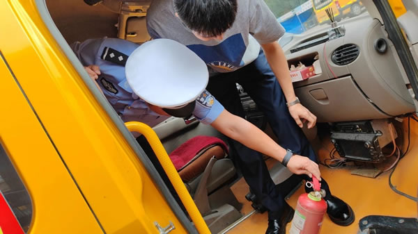 活動中,客運中隊民警首先對校車的輪胎、反光標識、安全錘、逃生門、滅火器、安全帶、停車指示牌等安全設備進行了認真檢查,其次對校車車輛手續(xù)是否齊全、車輛車況是否良好、駕駛人準駕車型是否相符、以及行車日志等信息進行了細致的排查。民警對不符合標準的地方進行了明確講解標注,并下發(fā)《校車隱患整改通知書》責令校車負責人限期整改,確保每一輛校車能夠安全平穩(wěn)運行。