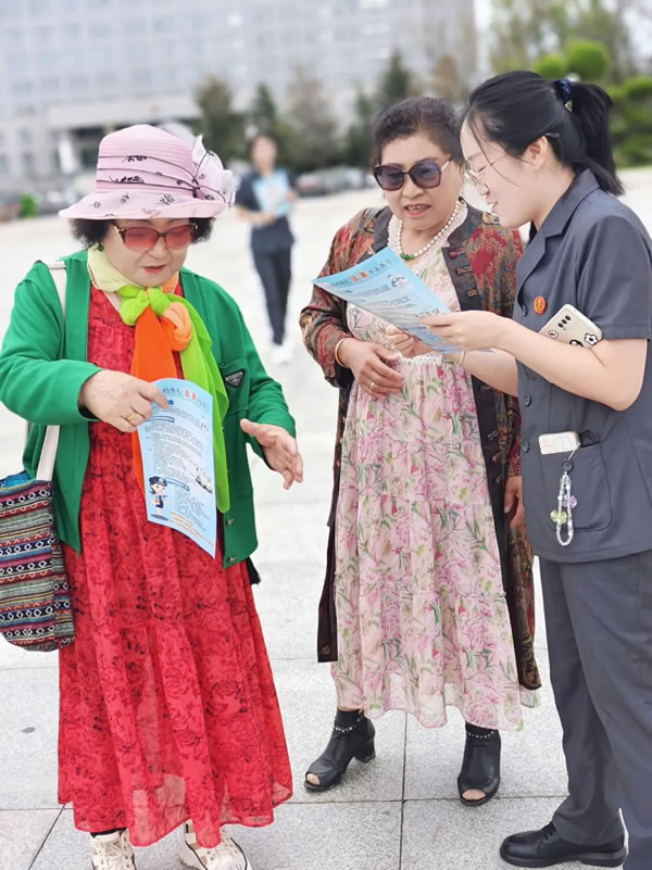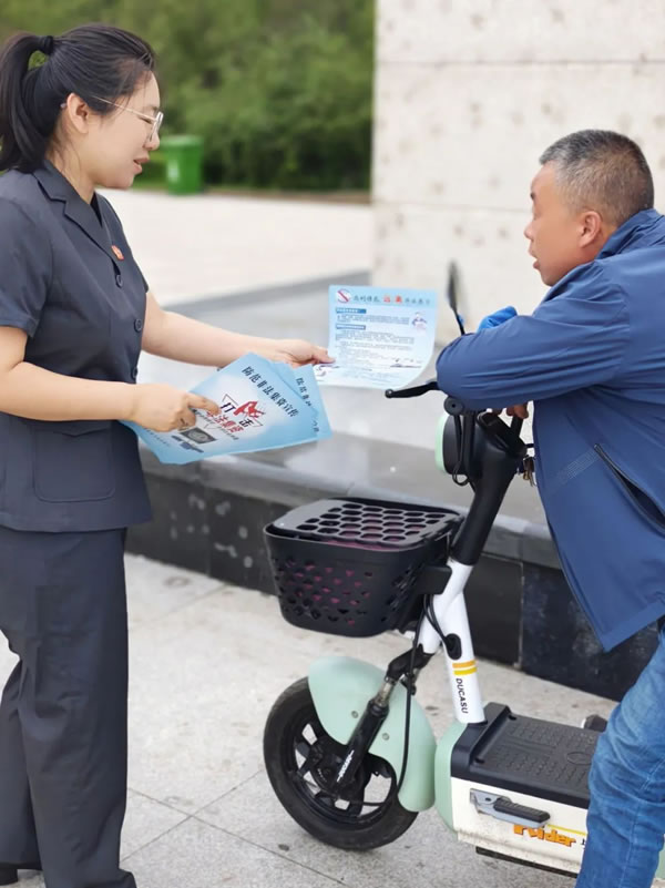 “大娘,請(qǐng)您看一下這個(gè)宣傳單,今天我們給大家做一個(gè)防范非法集資的普法活動(dòng),通俗來(lái)講就是教你們?cè)趺床槐或_......”