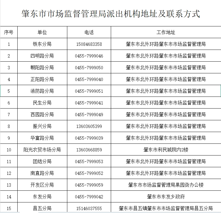 關(guān)于肇東市市場監(jiān)督管理局派出機構(gòu)地址及聯(lián)系方式的公告