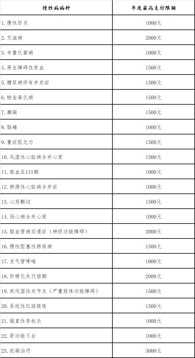 一、慢性病病種及年度最高支付限額: