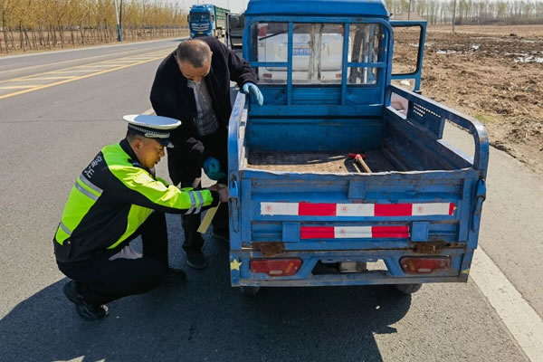 活動(dòng)同時(shí),民警還積極推進(jìn)“亮尾工程”,他們深入田間地頭和農(nóng)戶家中,本著“一臺(tái)不漏、一臺(tái)不少”的原則,為沒有反光標(biāo)識(shí)的農(nóng)用車粘貼了反光貼,對(duì)已陳舊、脫落的進(jìn)行查缺補(bǔ)漏,掃除盲區(qū)和死角,消除事故隱患,為秋收保駕護(hù)航。