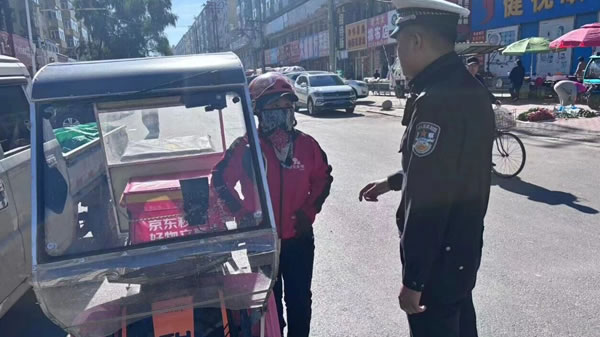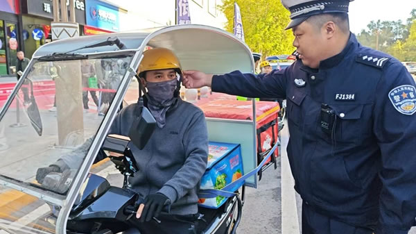 行動(dòng)中,民輔警在城區(qū)電動(dòng)車(chē)、摩托車(chē)通行集中路段,對(duì)摩托車(chē)、電動(dòng)車(chē)逐輛進(jìn)行檢查,對(duì)未正確佩戴安全頭盔的騎乘人員,現(xiàn)場(chǎng)講解正確佩戴頭盔的方法及佩戴頭盔的重要性和必要性。對(duì)未佩戴安全頭盔的騎乘人員進(jìn)行教育、警告。并當(dāng)面宣講交通安全法律法規(guī)等安全知識(shí),詳細(xì)剖析駕乘電動(dòng)車(chē)、摩托車(chē)不佩戴安全頭盔的嚴(yán)重危害和后果。尤其針對(duì)外賣(mài)、快遞等配送人員,民輔警在街頭逐一檢查車(chē)輛運(yùn)行手續(xù)和安全性能、頭盔是否符合國(guó)家標(biāo)準(zhǔn)等情況,明確要求快遞配送人員必須發(fā)揮重點(diǎn)行業(yè)示范引領(lǐng)作用,時(shí)刻戴好安全頭盔,遵守交通法規(guī),做好交通安全的帶頭人。