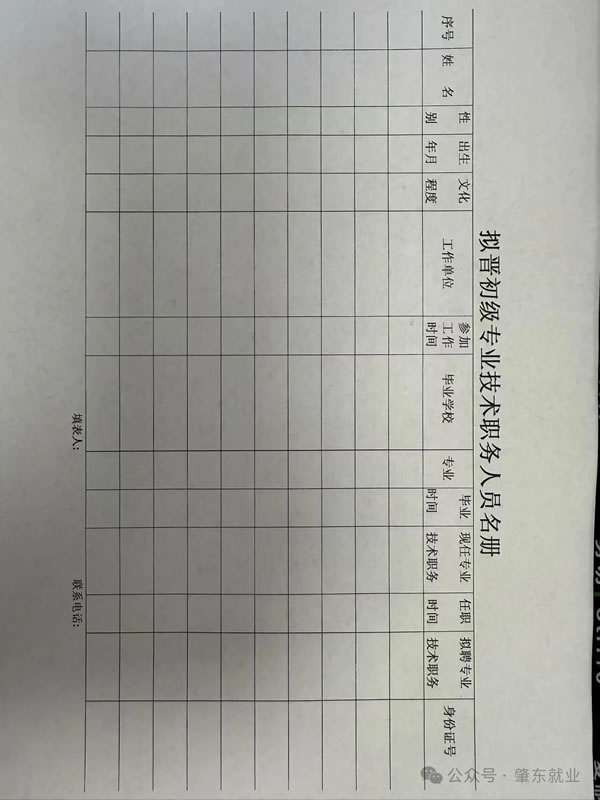 4、填寫《擬晉初級專業(yè)技術(shù)職務(wù)人員名冊》一份,內(nèi)容填全。