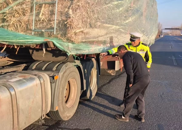 “師傅,您這車苫布沒固定牢,行駛中容易被風(fēng)吹開,秸稈灑落不僅影響交通,還可能引發(fā)事故,我們幫您加固一下!痹跈z查現(xiàn)場,每當(dāng)發(fā)現(xiàn)苫布松散、捆綁不牢的車輛,民警都會主動協(xié)助駕駛員重新遮蓋,調(diào)整苫布位置、拉緊繩索、扣緊卡扣,反復(fù)檢查確認(rèn)穩(wěn)固后才放行。并再三叮囑駕駛員途中要定時(shí)檢查,遇大風(fēng)、降水等天氣務(wù)必減速慢行,用實(shí)際行動贏得了駕駛員的理解與配合。