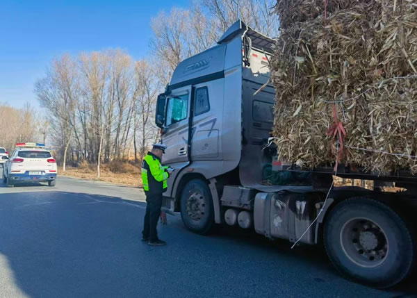 秋收季節(jié),秸稈運(yùn)輸進(jìn)入高峰期,部分大貨車存在苫布覆蓋不嚴(yán)、貨物灑落、違規(guī)行駛等問題,給道路交通安全和環(huán)境整潔帶來隱患。為規(guī)范秸稈運(yùn)輸秩序,保障轄區(qū)道路通行安全,11月5日以來,肇東交管大隊(duì)聚焦秸稈運(yùn)輸突出問題,大隊(duì)領(lǐng)導(dǎo)親臨現(xiàn)場指揮," />