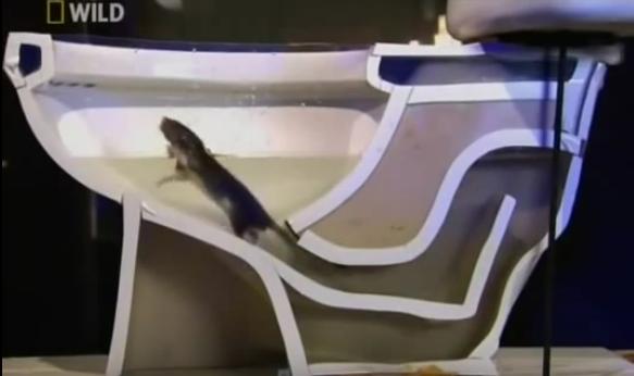 雖然讓人覺(jué)得很惡心,但是我們還是一起來(lái)看看老鼠如何從下水道進(jìn)入家里的吧! 視頻中實(shí)驗(yàn)者為了便于觀察,設(shè)計(jì)了這種半透明的馬桶,好讓各位觀眾能夠看到老鼠的運(yùn)動(dòng)軌跡。
