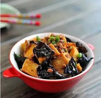 而青菜和木耳中都含有豐富的膳食纖維,正好能彌補豆腐的這一缺點。