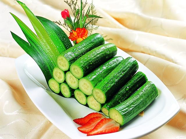 黃瓜:味甘,性平,具有明顯的清熱解毒、生津止渴功效。黃瓜所含的黃瓜酸,能促進(jìn)人體新陳代謝,排出毒素;能美白肌膚,使其保持彈性,抑制黑色素的形成。