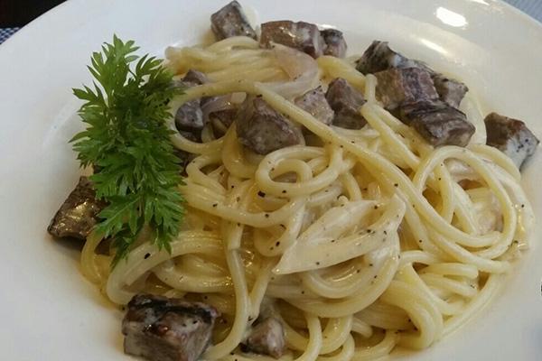 質(zhì)料: 培根,羅勒,大蒜,胡椒粉,洋蔥,意大利面,芝士碎,鹽,芝士粉。