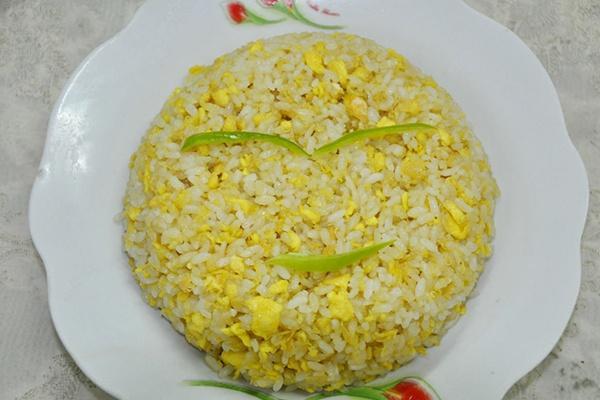 做法:雞蛋只取蛋黃,米飯刮松、小蔥洗凈后切成蔥花。蛋黃調(diào)入少許鹽打散,將米飯倒入蛋黃液中,浸泡,拌勻,包管每粒米上都沾上蛋黃液。熱鍋倒油,油溫升高后放入米飯,翻炒,炒至米粒疏松。出鍋前關火撒上蔥花即可。